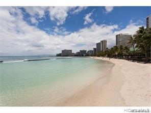 RARE! Deluxe extra large (481 sq.ft. 1 bedroom size), corner studio with full kitchen in excellent condition just steps to the beach. High floor on preferred Diamond Head side, with partial view of beautiful Kapiolani Park. Very well maintained building. Walk to restaurants, shopping and nightlife and attractions in Kapiolani Park. Generous (23 stalls available) parking first-come-first-served. Community laundry on premises. Security fob system required for entrance to building and elevator. No pets allowed. Most units above 8th floor have no lanai’s but larger floor plans. Also video security cameras and gated entry. Investor’s Dream, Vacation rentals allowed. Unit deemed in excellent condition but Sold As Is. No Lockbox -Listor must be present.