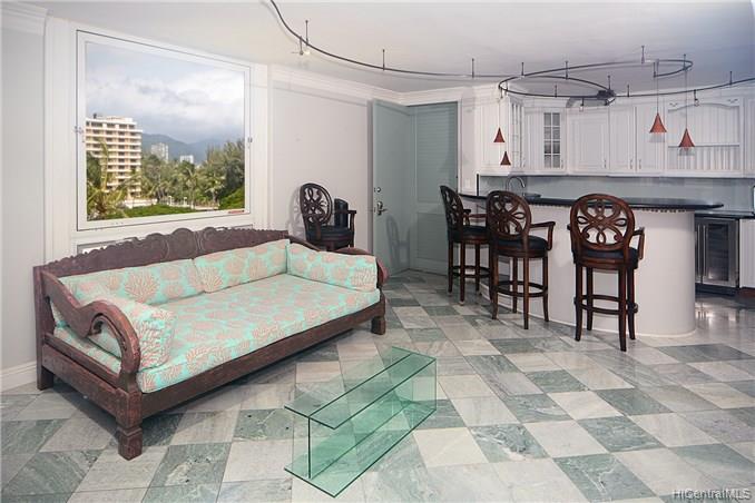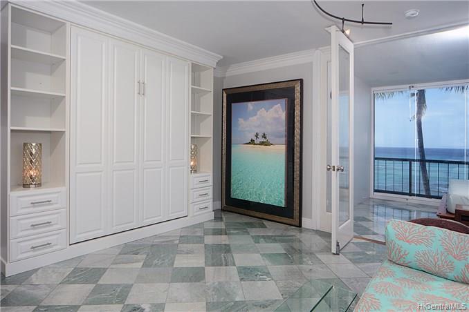 The largest studio on Honolulu’s Gold Coast was redesigned in the most beautiful, functional style w/a place for everything & everything in its place. Direct oceanfront higher floor is the place to be at Tropic Seas, featuring a seamless-glass-enclosed lanai spacious enough to entertain. Or take friends to the Hau Terrace with BBQ, seating & steps to ocean/beach access. Come and allow your senses to be captivated amidst 360º of nature: lapping waves, sweet fairy terns, perennial mauka breezes. Embrace the ultimate lifestyle in the historic Diamond Head community: Kapi‘olani Park, Waikiki Shell, renown surf breaks, hikes, shops and eateries. Walk score 89; bike score 65; transit score 63. Pet-friendly. Parking via waitlist; parking rental available next door. HOA fee include ALL utilities.