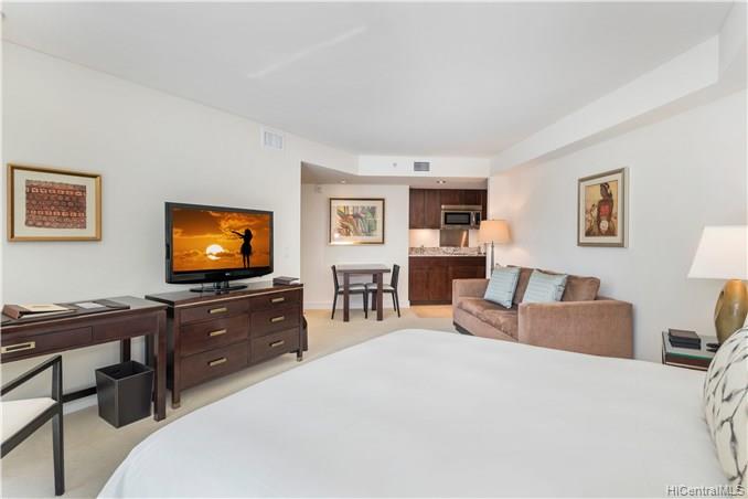 Elegant and modern, fully furnished, turn-key studio in Five-Star rated Trump International Hotel condo in Waikiki. Very functional design with wonderful finishes including granite counter-tops, stainless steel appliances as well as a separate shower and bath. Enjoy resort living with access to the swimming pool, spa, restaurant, and lounge – all on-site. Fantastic location in Waikiki with the beach, shopping, and restaurants only a short distance away.
