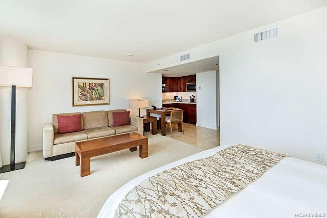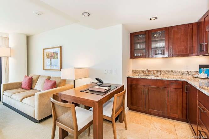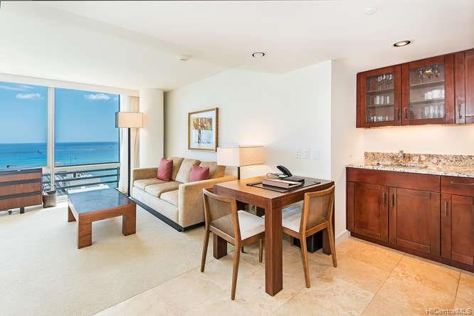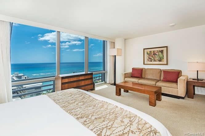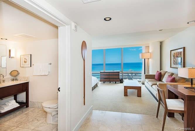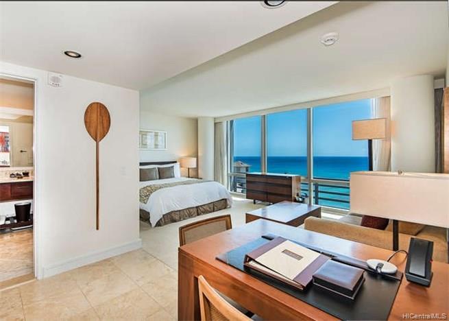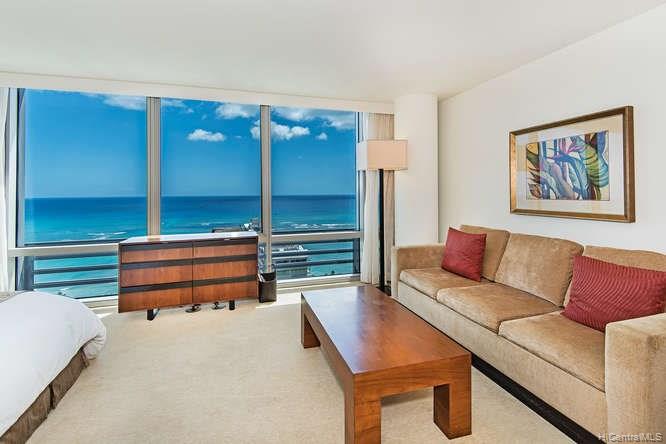 Fabulous ocean view! Located on the South end of the tower looking directly over the ocean through floor to ceiling windows. Enjoy the gorgeous sunsets and Friday night fireworks from the comfort of your suite. The 23rd floor is the top floor for the studio suites. Perfectly designed with king size bed, living area with sofa-sleeper, kitchen with dining table for two and 5 piece bathroom. The Trump Waikiki staff is award winning for their five-star service and awarded Forbes Five Star International Designation.