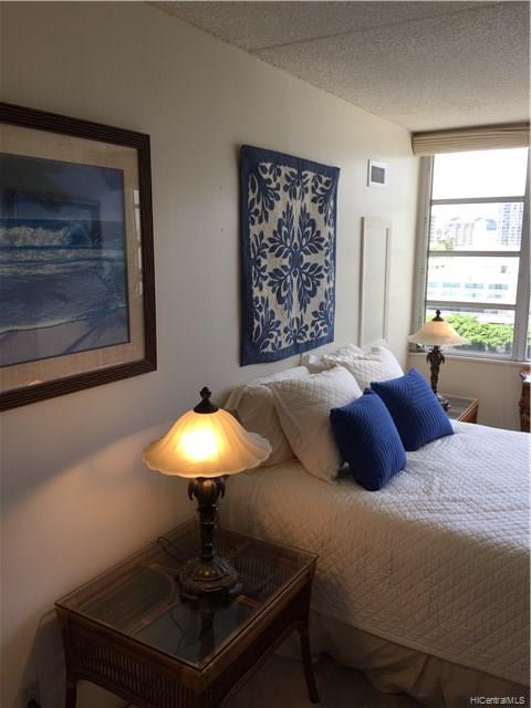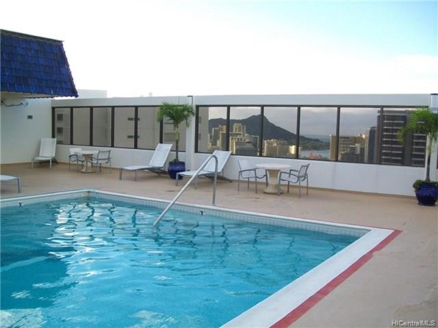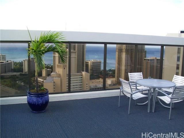 This apartment is an Oceanside corner apartment which give extra sq. footage and extra windows in the kitchen and living room. Such a peaceful corner. Great views to the ocean and Marina. Beautiful lanai views over the Ala Wai. AAA building with “to die for” roof top amenities deck with 360 degree views over Waikiki. Pet friendly. Superior security and management. Central AC. Value to value one of the best buildings in Waikiki.
