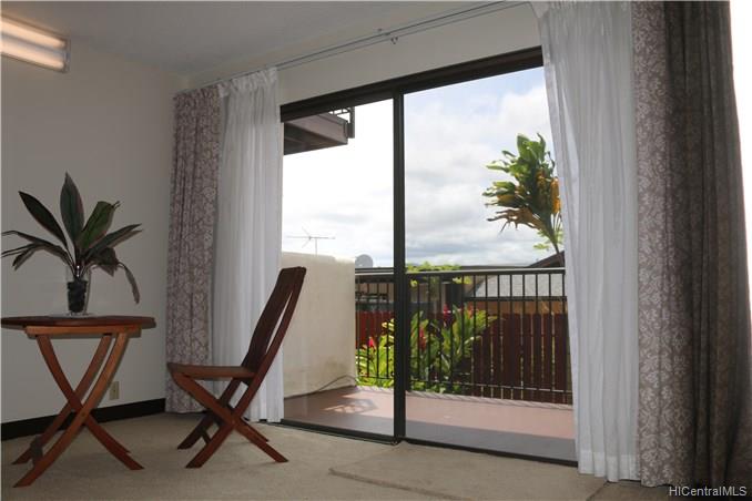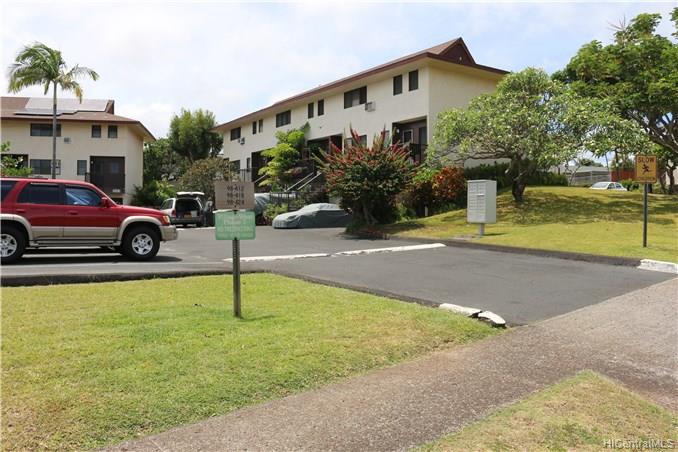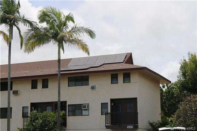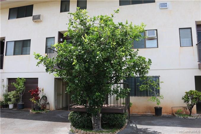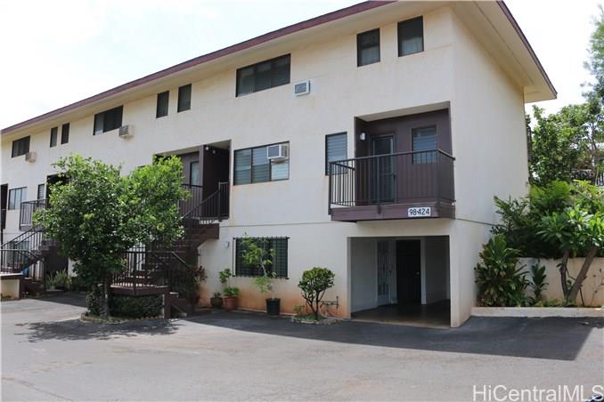 GET A BONUS ROOM (320 s.f. approx.)! Huge townhome about 2, 000 sft of living space. in Aiea, close to Pearlridge Mall, Camp Smith, Fort Shafter. Split level with 3 bedrooms and 2 full baths upstairs. The living room, dining room and kitchen on the second level. One the bottom level, one half of the garage was permitted to be enclosed as a family room, a store room, and a full bathroom with separate entrance. Very breezy and spacious unit, has 3 lanais and 2 storage rooms. Bathrooms and square footage may not agree with tax records. Seller installed 24 Solar PV panels in 2014, and camera security system in the unit. Ample parking space: 1 covered garage with attached stores (334 sf), and 2 extra wide open parking stalls at the front.