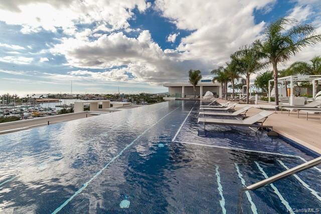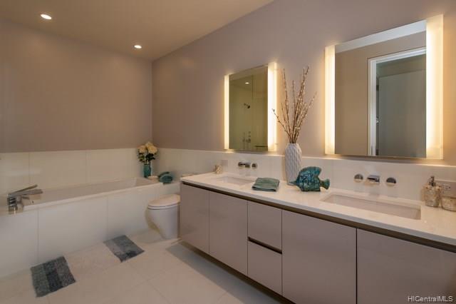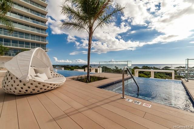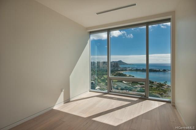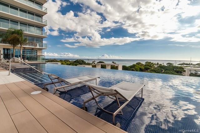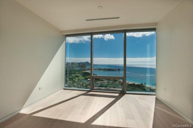 Honolulu’s most luxurious address- 1118 Ala Moana- Waiea 2502, popular “F” unit. Wonderful opportunity to own this fabulous high end newly completed Waiea. Sweeping ocean, Diamond Head and marina views. Sophisticated high quality design and furnished interior. Amazing indoor and outdoor amenities like a deluxe fitness center, steam room, sauna room, theater, dining room with catering chef, library, bar, lounge, pool, dog park and much more.