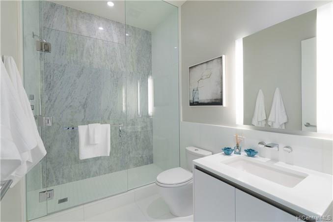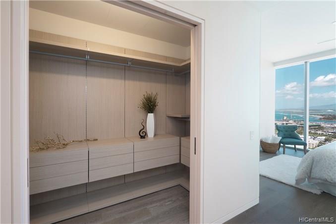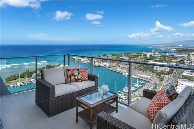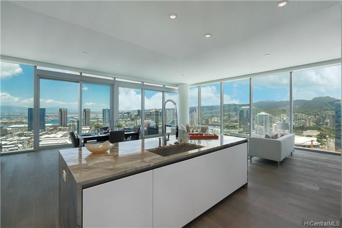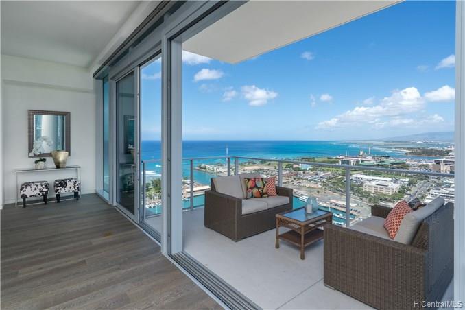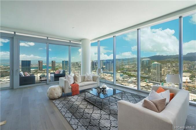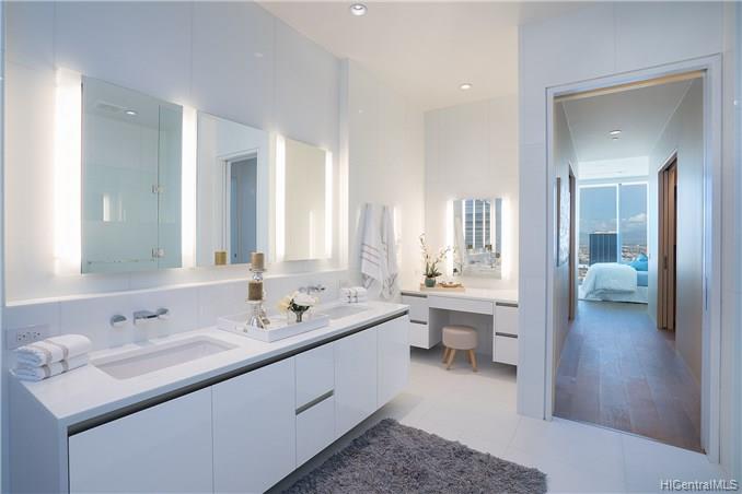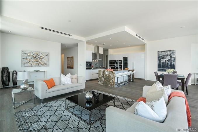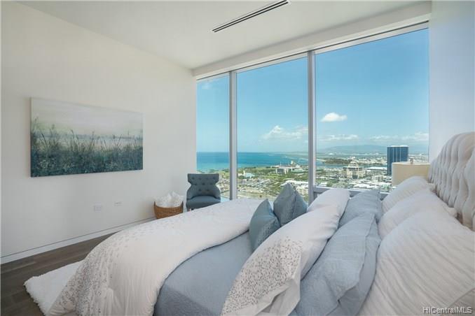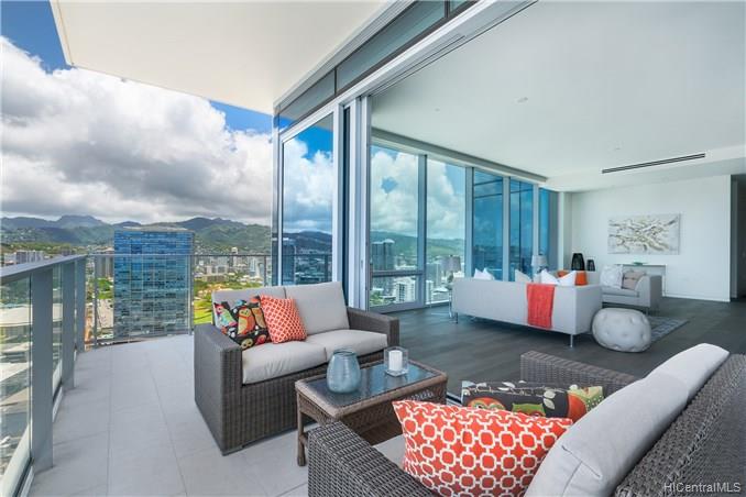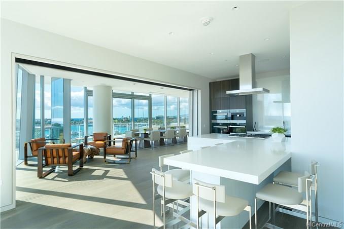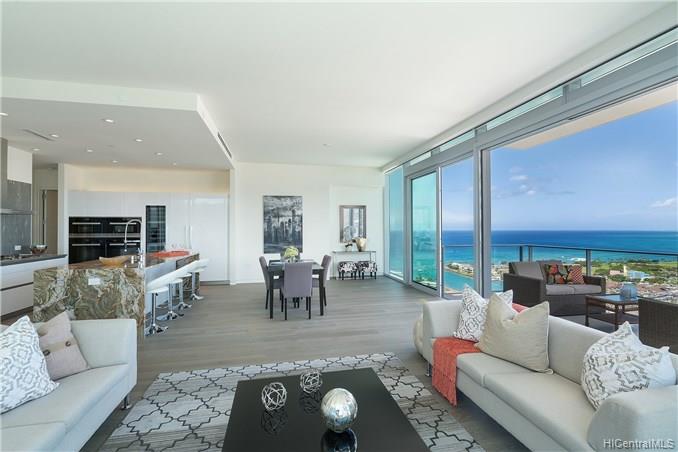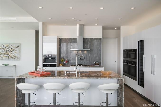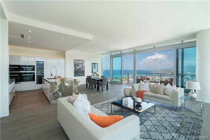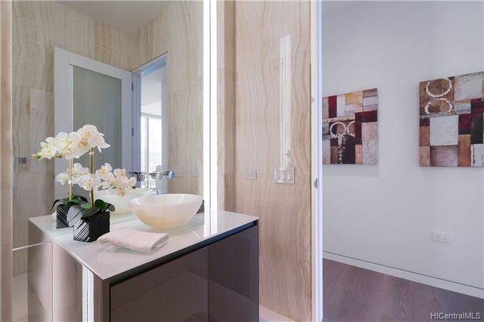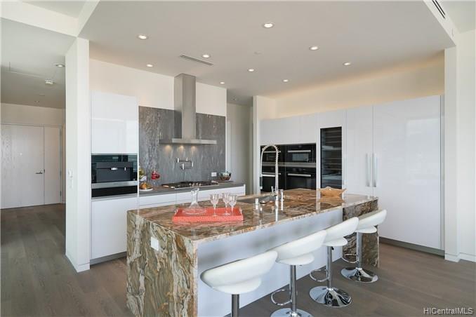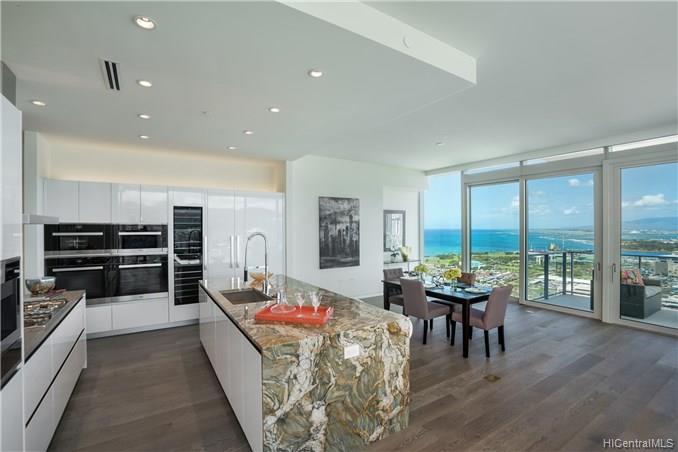 Waiea is a masterpiece created by the world-renowned architect, James K.M.Cheng in collaboration with one of America’s iconic interior designers, Tony Ingrao. Penthouse features upgrades for the kitchen, countertops, backsplash, all appliances, and stone finish in the master bathroom. This penthouse unit has main entry door with own foyer and also private service entry door in the laundry room. 12.5-foot ceiling heights boast its grand feeling of penthouse unit. Stunning Ocean and Sunset views from master suite and living room with a spacious lanai. Storage room is included and conveniently located in parking stalls. Waiea in Ward Village is ideally situated between downtown Honolulu to the west and world-renowned Ala Moana Center and Waikiki to the East.