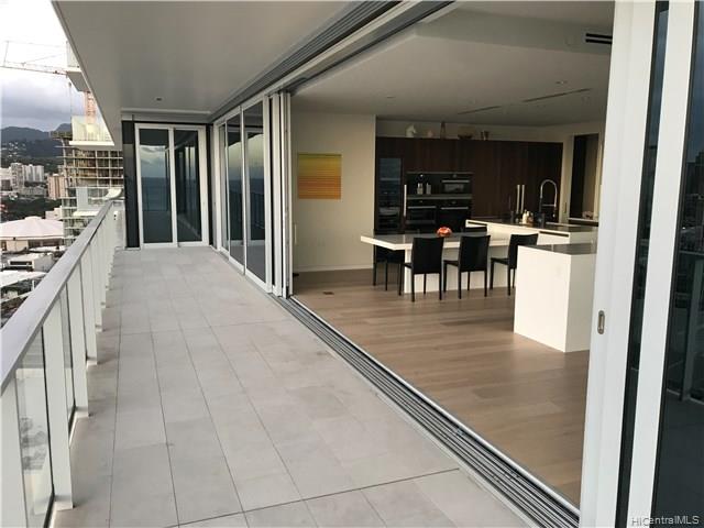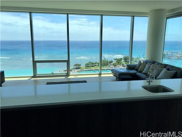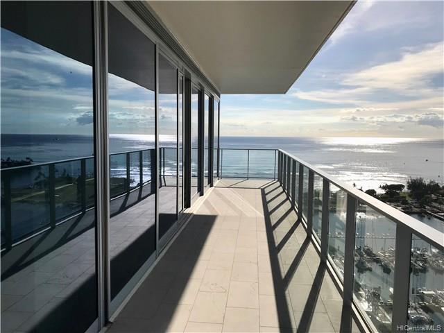 New ultra-luxury condo in prime location with ocean views; Ala Moana Beach in the proximate foreground. Spacious 3 bedroom unit at the desired height, with the character of a house, with a private foyer and large lanai. Features include: hardwood oak flooring, motorized solar shades, quartz counters, Miele appliances, walk-in closets, upgraded laundry room, 4 toto washlets. Two side-by-side full parking spaces. Amenities:Concierge, gym, active/passive exercise rooms, sunset bar, party room, theater room, massage room, swim/lap pool, whirlpool, sauna, steam room, BBQ, cabanas, playground, dog park, guest suites.