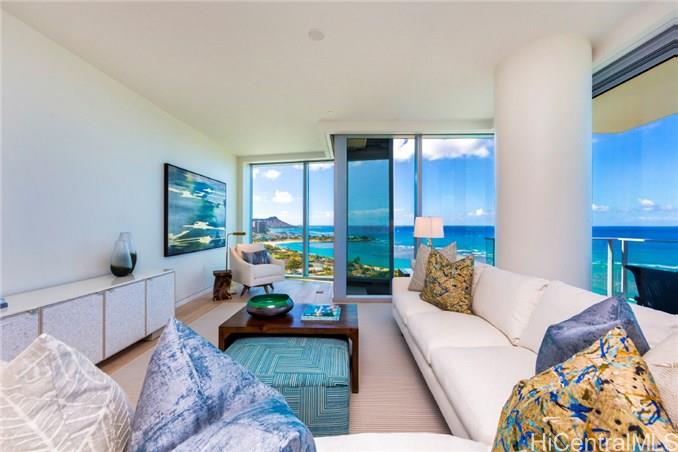 Presenting Waiea #2100, an unrivaled paragon of modern luxury meets Hawaii lifestyle in dynamic, desirable Ward Village—Architectural Digest’s top master-planned community for 2017. The truly special experience begins with the private elevator entrance leading to a spacious ocean view foyer. Step inside and become captivated by the open contemporary floor plan; Interior design work by San Francisco’s Henderson Design Group elevates your senses to new heights, drawing inspiration from nature to create an urban-tropical haven. Centrally positioned in Kaka`ako, Honolulu’s most desirable upscale walk-able neighborhood. All of your needs are within blocks including Ala Moana Beach Park, Whole Foods (Coming 2018), Ward Village dining, shopping, Ward theaters, with snorkeling, surfing and water sports directly across the street. A Paragon of paradise, found – this is Waiea #2100.