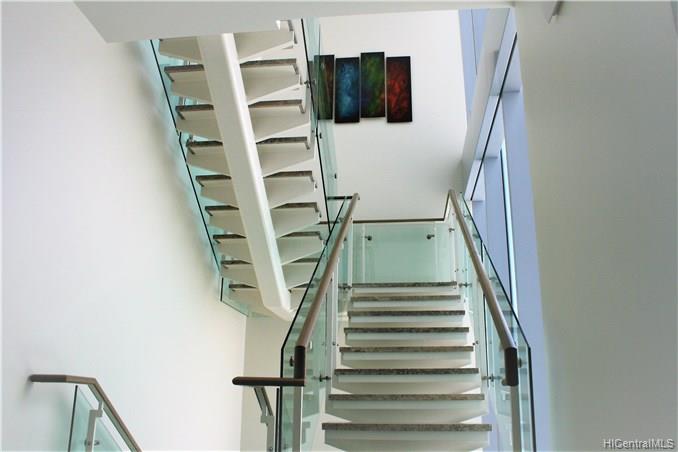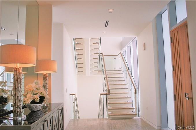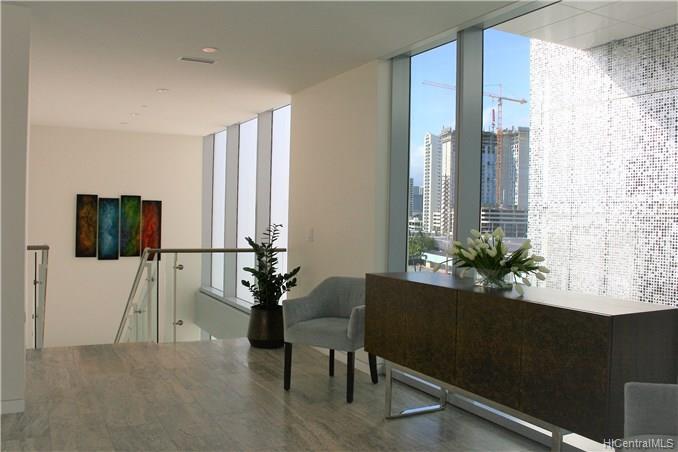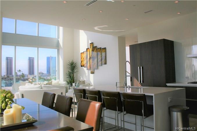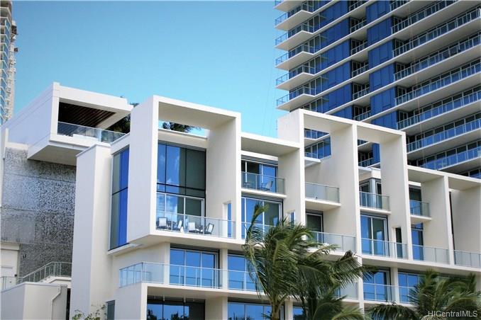 Enjoy this exclusive premium corner/end VILLA unit w/ your own private walkway entry directly from your parking stalls into your tri-level 4 bdrm / 5 bath spacious living space at the WAIEA ultra luxury condo @ Ward Village. This property features expansive large lanais on each level, a gourmet kitchen w/ Miele appliances & European cabinets, travertine floors, quartz counters, Onyx stone featured wall in Mstr Bdrm, motorized sun shades, & whirlpool spa on the top level Lanai, etc. Sold FULLY FURNISHED!!! Amenities incl: concierge, inifinity pool, whirlpool, BBQ areas, cabanas, sunset bar, active/passive exercise rooms, party rooms w/ chef’s kitchen, theater room, massage room, sauna, steam room, playground, dog park, & guest suites.