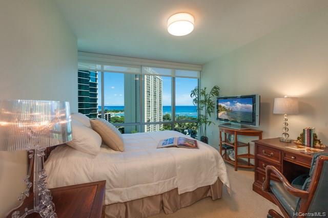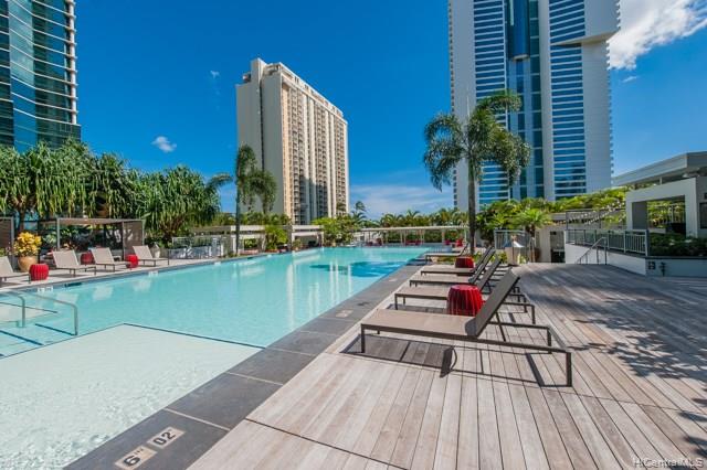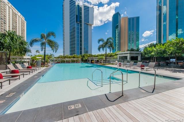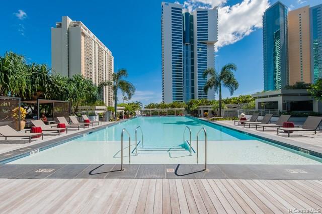 Live your Hawaiian Beachside dream life! Just a steps across from White Sand beach of Ala Moana Beach park, world famous Ala Moana Shopping Mall, Ward Village and close to Waikiki. Highly desirable Diamond Head corner of 3 bedroom unit with wrap around view of blue ocean, white beach and mountains. Beautifully appointed with high ceiling, floor to ceiling windows, walnut wood flooring, custom cabinets, stone countertops, two covered parking stalls, and storage locker. First class resort style amenities include: Infinity pool, spa, fitness center, yoga room, several BBQ pavilions, private movie theater, two guest suites, club party room with full kitchen, conference or card reading room. Great find in Prime Honolulu Location!