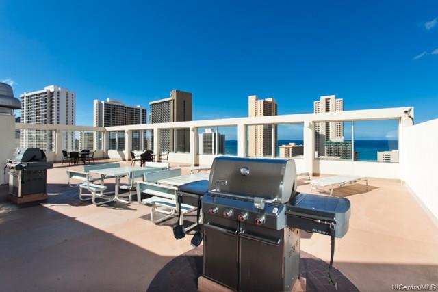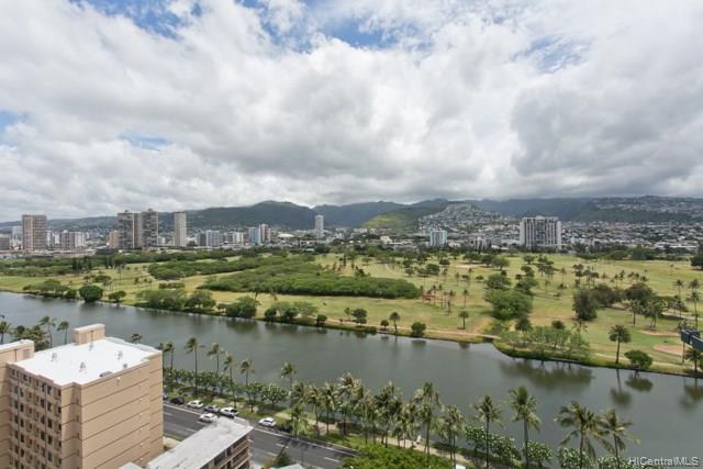 Priced to sell! Fabulous, breezy with beautiful canal and mountain views! Spacious layout, walk in closet, new paint and new carpet (February 2018). Furniture is included. Turnkey just bring your luggage or rent out immediately! Popular building with nice amenities! Just steps from the newly rebuilt International Market Place & only two blocks from Waikiki Beach. Stunning rooftop recreation deck 360 degree views of Waikiki with pool, hot tub, exercise room, and sauna, bike rack, and storage for surf board or kayak. Maintenance fee includes Cable TV, Electricity, Gas, Hot Water, Internet Service, Sewer, Water.