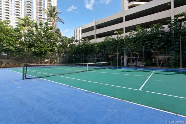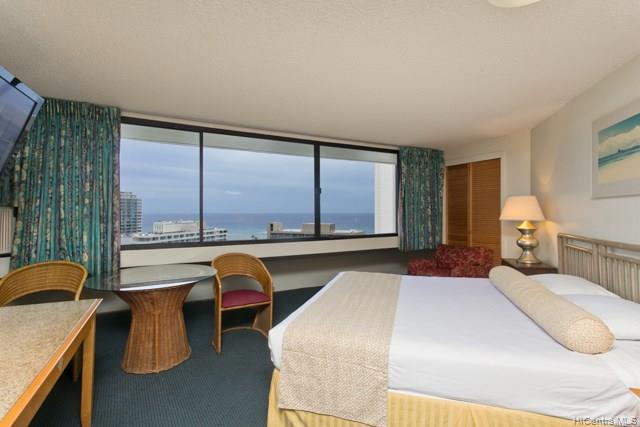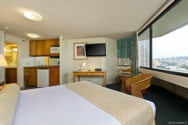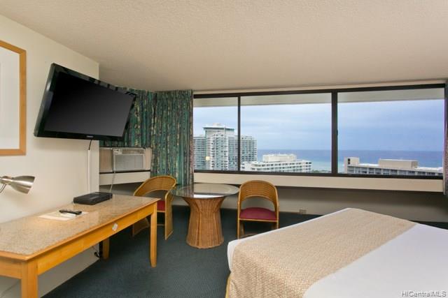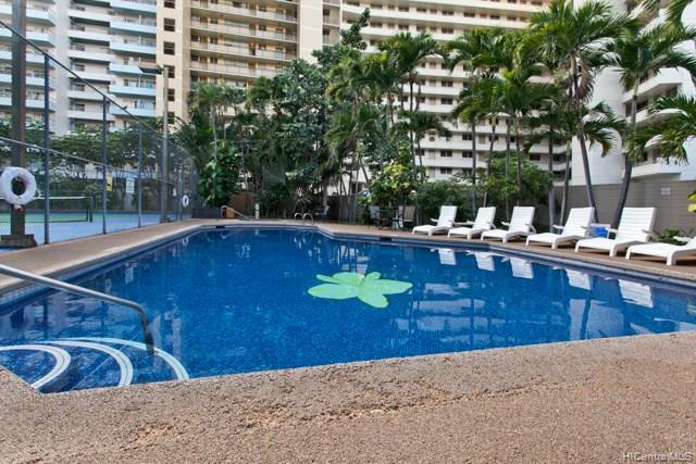Ideal studio in a great location. Great Ocean Views and Conveniently close to restaurants, entertainment, Ala Moana Shopping center/beach park, Hilton Hawaiian Village and Friday fireworks. The unit is fully furnished and move in ready. Gated parking, secured entry and onsite laundry located on the same level, assigned parking, four units per floor. Pool, tennis court & bbq area.