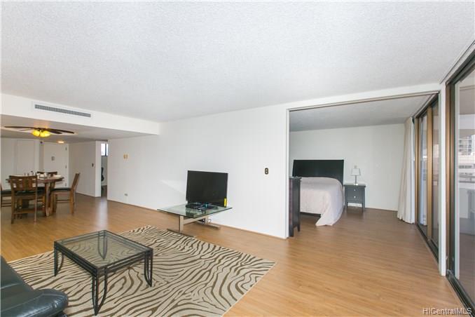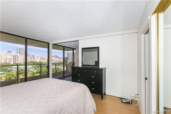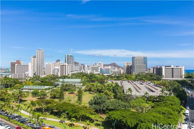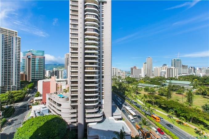Fee Simple! Clean and ready to move in! Very spacious unit which makes this 2/2 so comfortable. Located at the start of Waikiki and close to Ala Moana. Bright unit with a views of Waikiki. Fort Derussy and even Diamond Hd! Storage locker right outside the door. Pet friendly Bldg (Pls verify)