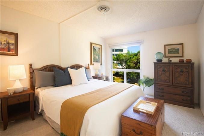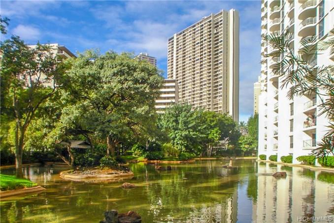One of the RAREST Waipuna units is now on the market! As soon as you enter this beautiful unit, you will feel as if you entered a private oasis. With a tremendous interior and a supersized 312 sq. ft. lanai, you’ll be one of the few to own this rare floor plan, surrounded by lush manicured trees, tropical foliage and the glistening pond, w/PARKING for 2 CARS steps from the unit. Kitchen remodeled to perfection, with custom cabinets, quartz countertops and stainless steel appliances. Private master bedroom is a blissful escape, featuring an en-suite bath and access to the lanai. Located in Waikiki’s award-winning, prestigious building, enjoy LOW maintenance fees, resort amenities: heated pool, sauna, BBQ, fitness room, DOG run, 40 guest parking stalls, 24/7 security, onsite resident manager & more! Walk to the beach, Ala Moana Shopping Ctr., restaurants and all the luxuries of Waikiki! Don’t miss this opportunity to own this rare condo, FIRST TIME ON MARKET SINCE ORIGINAL OWNERS!