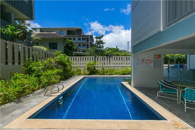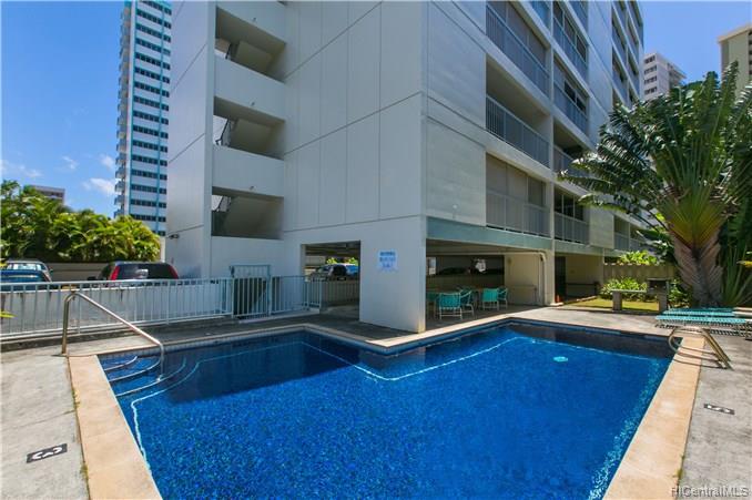 IMMACULATE READY-TO-MOVE-IN 1 bedroom / 1 bathroom corner unit located in the desirable Wilder House, centrally located at Makiki. This building is one of the best condominiums in Makiki. Property features an enclosed lanai that increases the living area considerably, open layout of the living space area with an immediate access to the kitchen upon entry of the home, spacious bedroom with extra closet space, an extra den that may be used as an office, or guest room/child’s room, corian countertops, and brand new carpeting. Relax and enjoy the cool breeze next to the swimming pool, or host family and friends to a BBQ in the BBQ area. This property won’t last, so don’t miss out on this one of a kind home, as it is a MUST-SEE property!