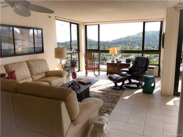 Shows beautifully. Wrap around ocean, Lanikai, Enchanted Lake and Koolau Mountain views. Third bedroom has been converted to extended living/dining room. Murphy bed in second bedroom is included in sale. Amenities include heated pool, spa, 3 tennis courts, 2 racquetball courts, gym, sauna, recreation room, storage, resident manager and 24/7 security.