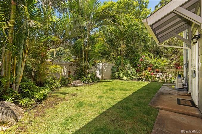 Walk into the serene setting of this clean and freshly painted owner occupied home that was recently renovated with Hawaiian exotic monkey pod laminate flooring through out. Enjoy ceiling fans and split a/c in the master bedroom that has an attached den/office or even a 4th bedroom. Plus the enclosed fenced yard for everyone to enjoy, conveniently located with no neighbors behind you and guest parking on the side which makes parking for your guest so much easier. 2 car attached garage has Solar Water heater that is owned not leased. Amenities include tennis courts, parks, walking/jogging paths along the stream, basket ball courts and children’s playgrounds. Home is move in ready….