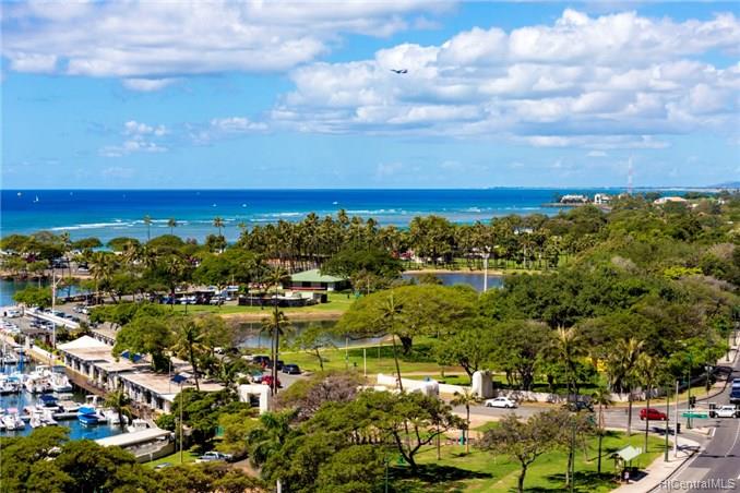 Enjoy unobstructed views of the Ocean, Marina, beautiful Sunset and July 4th Fire works. Large 1 bedroom, 1 bathroom, 1 parking in the Diamond Head Tower. The monthly maintenance fee is $1081 includes all utilities. Old special assessment has been fully paid.
